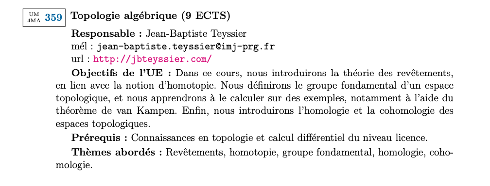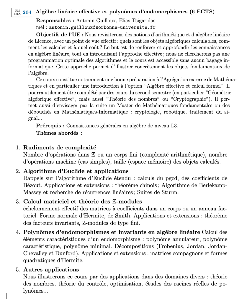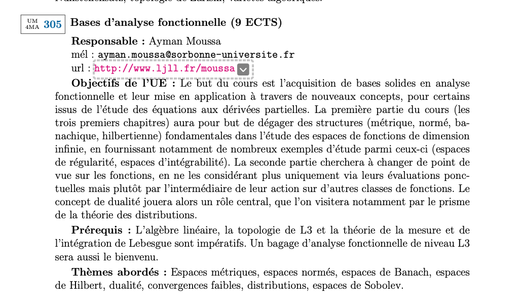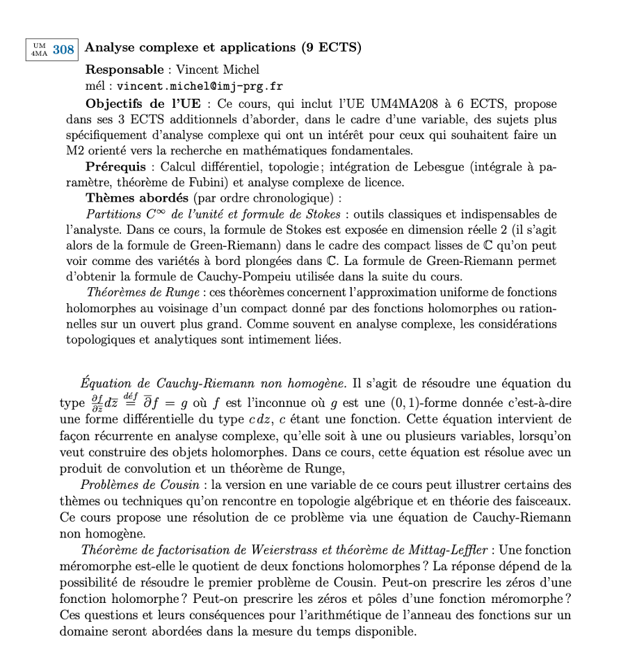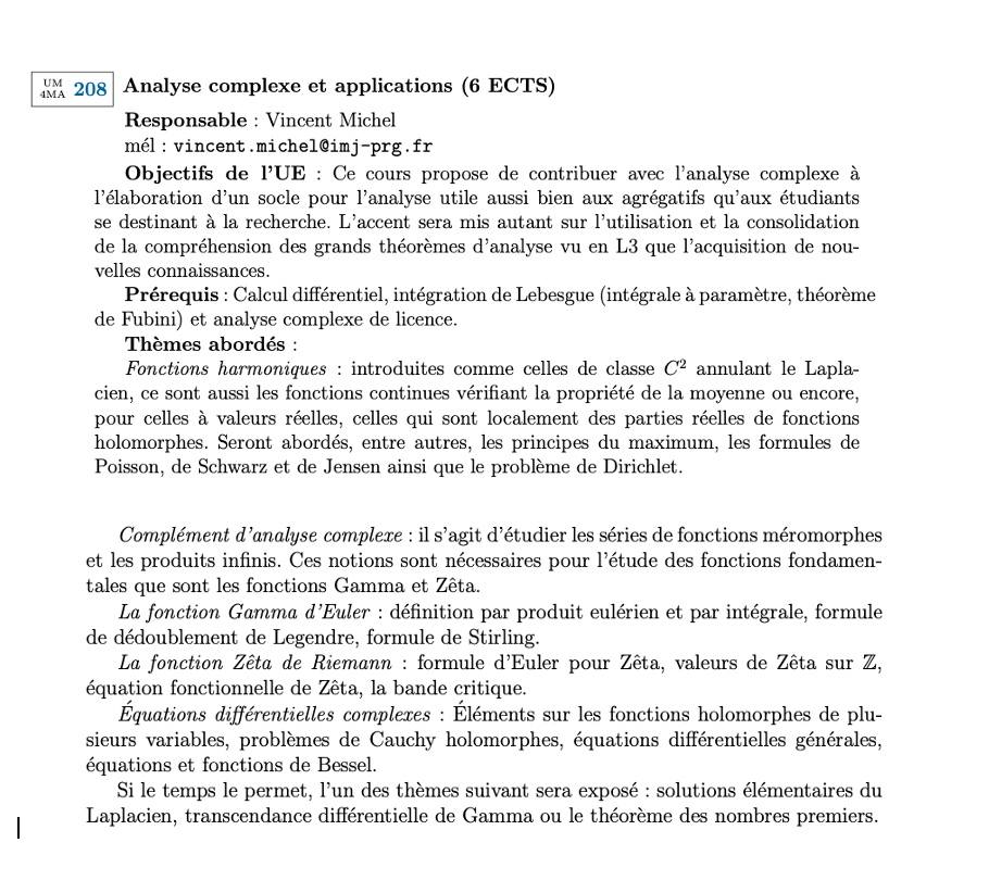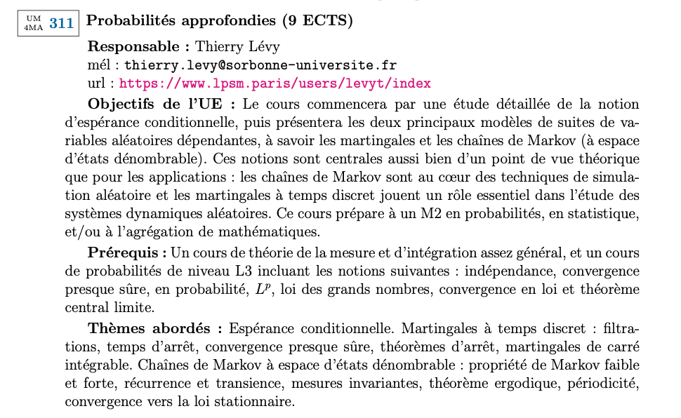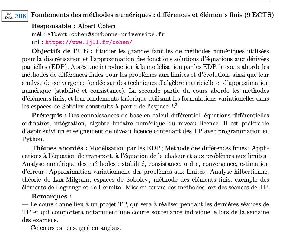 Some courses at M2 level may be authorised but only during the first semester (fall/winter term); however, we would like to point out that at Sorbonne University there is an important jump of level between courses at M1 level and those at M2 level, which are generally very specialised courses. We therefore recommend that you be very careful before choosing a course at M2 level and only if you have a specific motivation to do so.